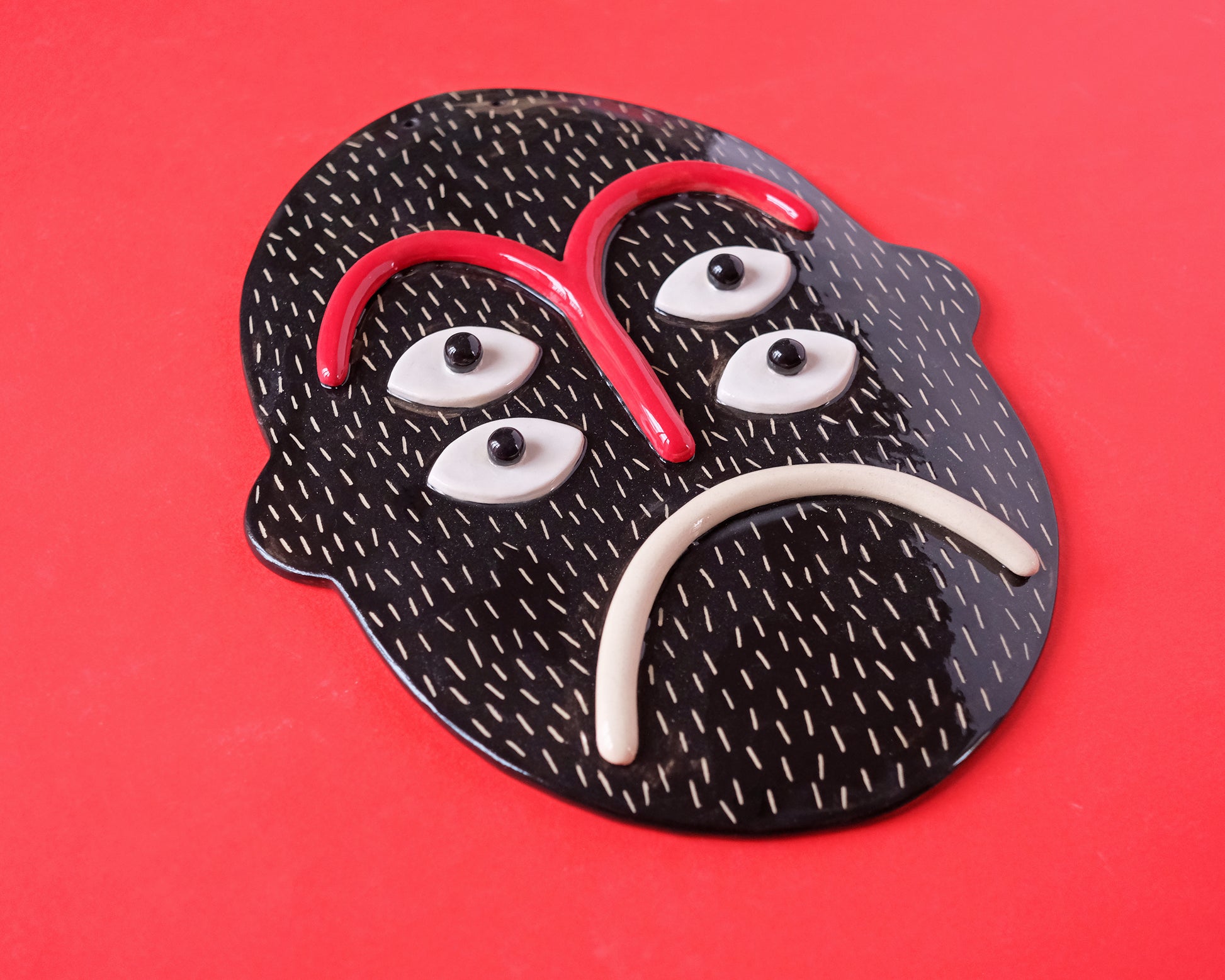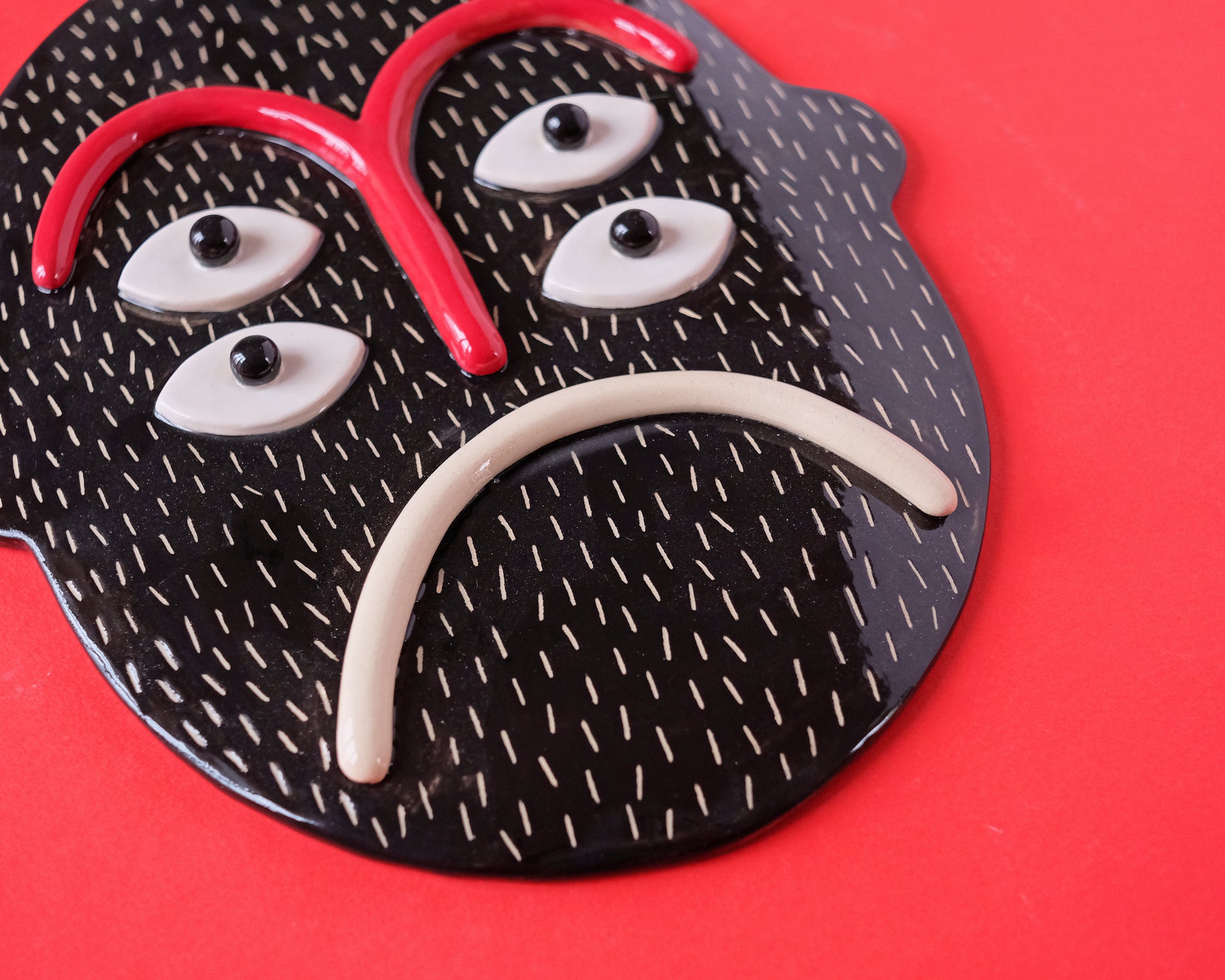 Unique one of a kind ceramic wall mask inspired by Edipo re movie by Pier Paolo Pasolini. There are 3 Masks in this collection each one comes with its own story which only I and owner of the mask know.