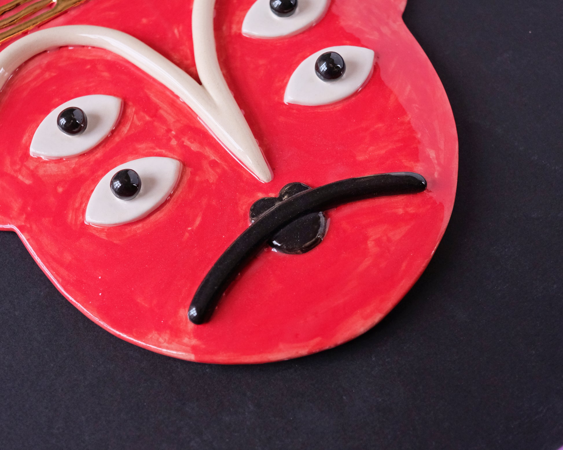 Unique one of a kind ceramic wall mask inspired by Edipo re movie by Pier Paolo Pasolini. There are 3 Masks in this collection each one comes with its own story which only I and owner of the mask know.