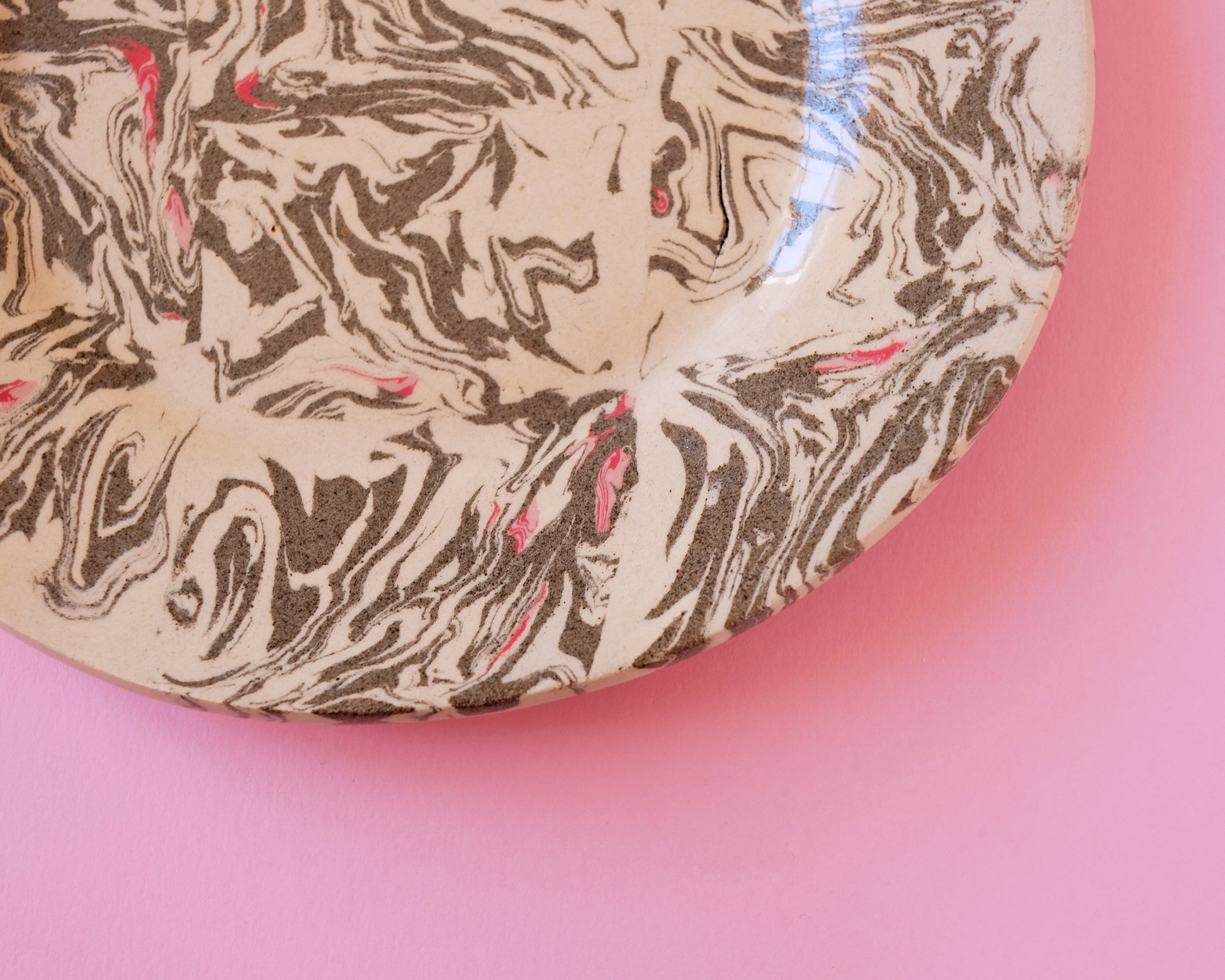 Unique one of a kind ceramic plate in Nerikomi technique (made of hand mixed different clays).