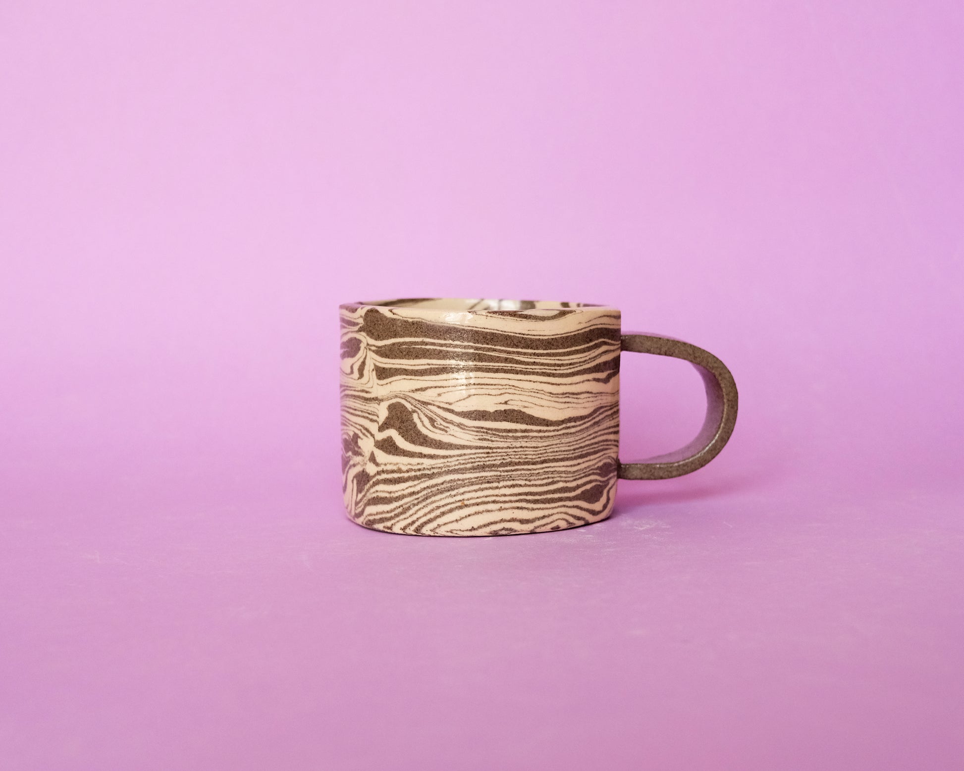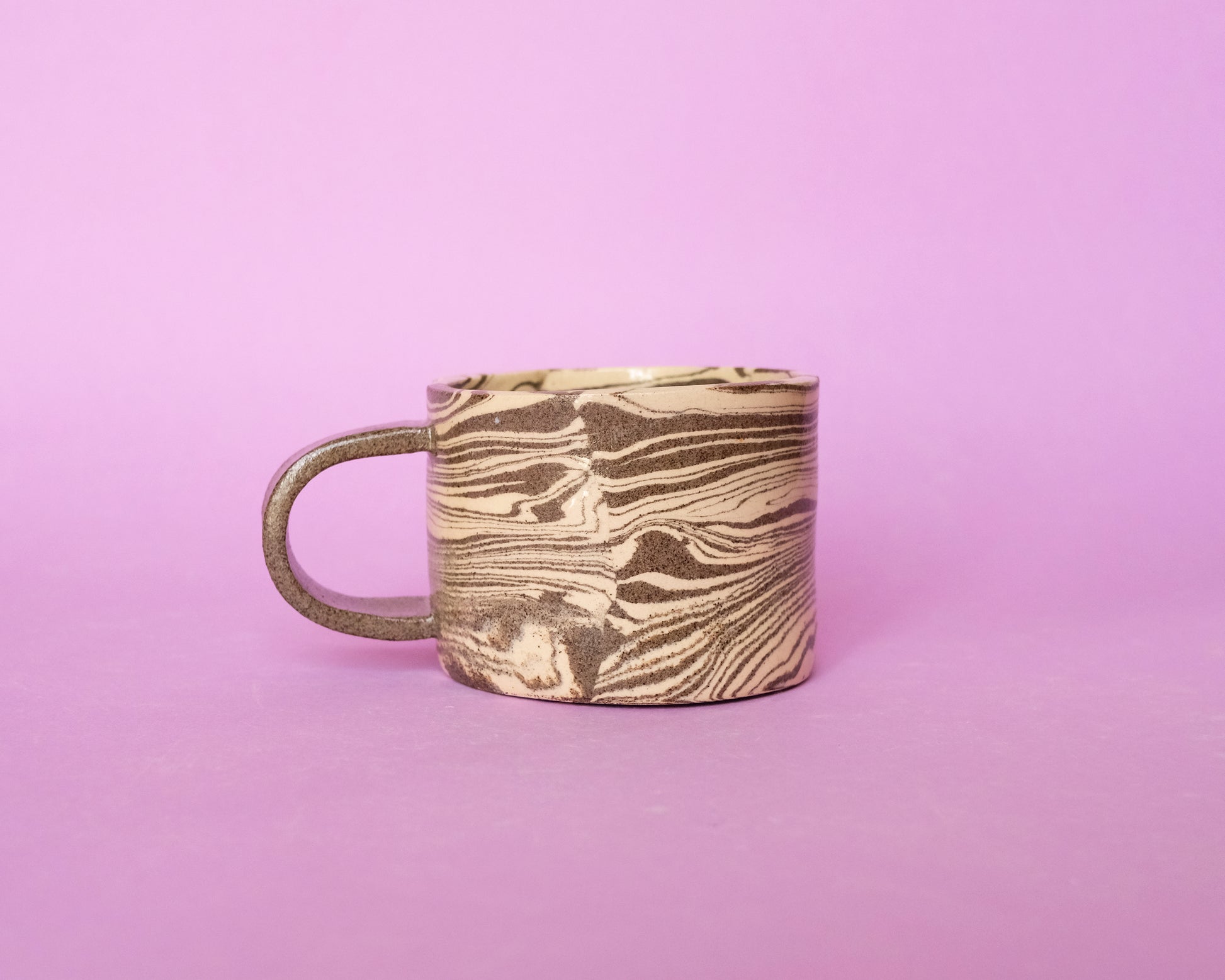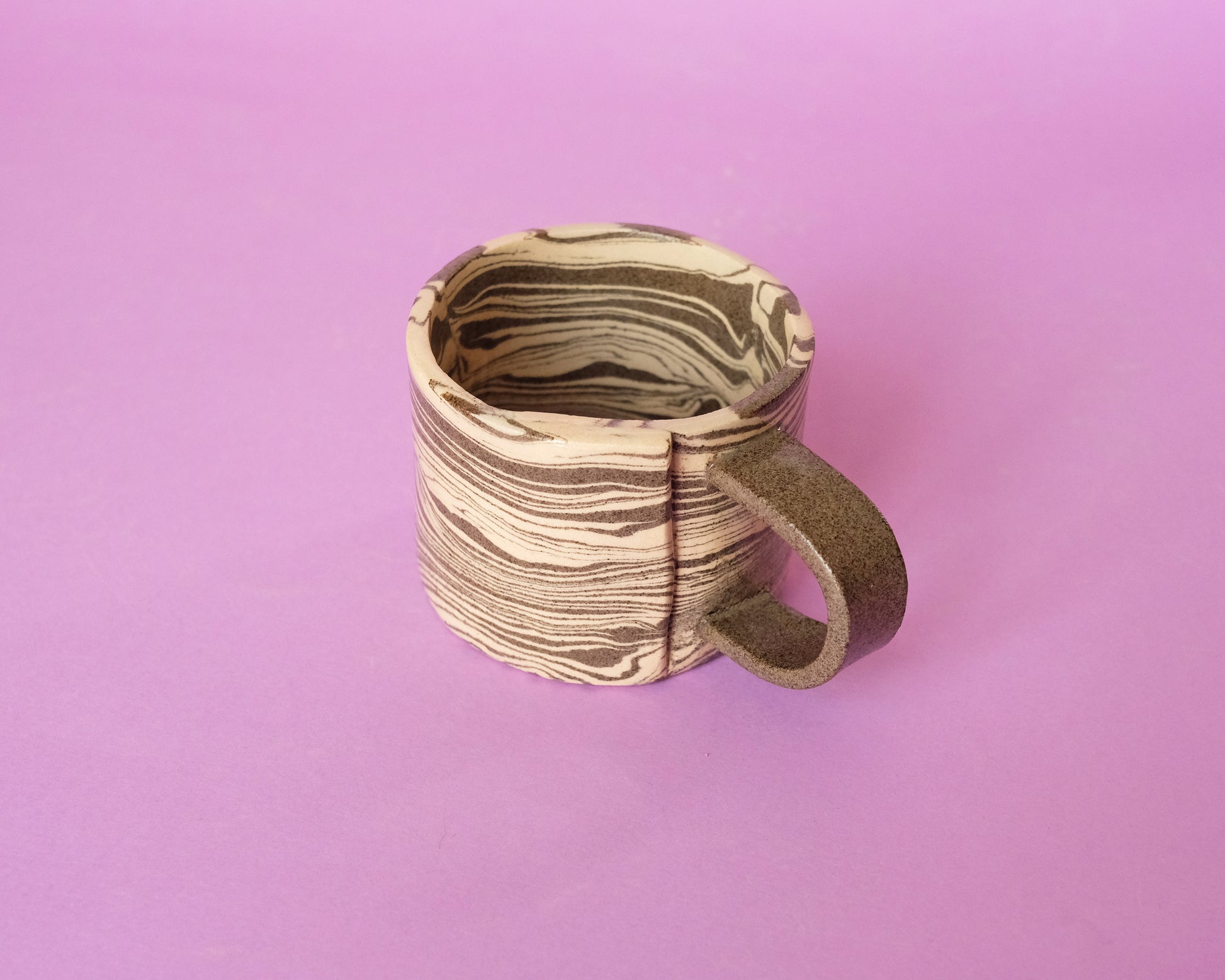Unique one of a kind ceramic cup. Made in nerikomi technique – this time I mix spanish stoneware and salt&pepper stoneware