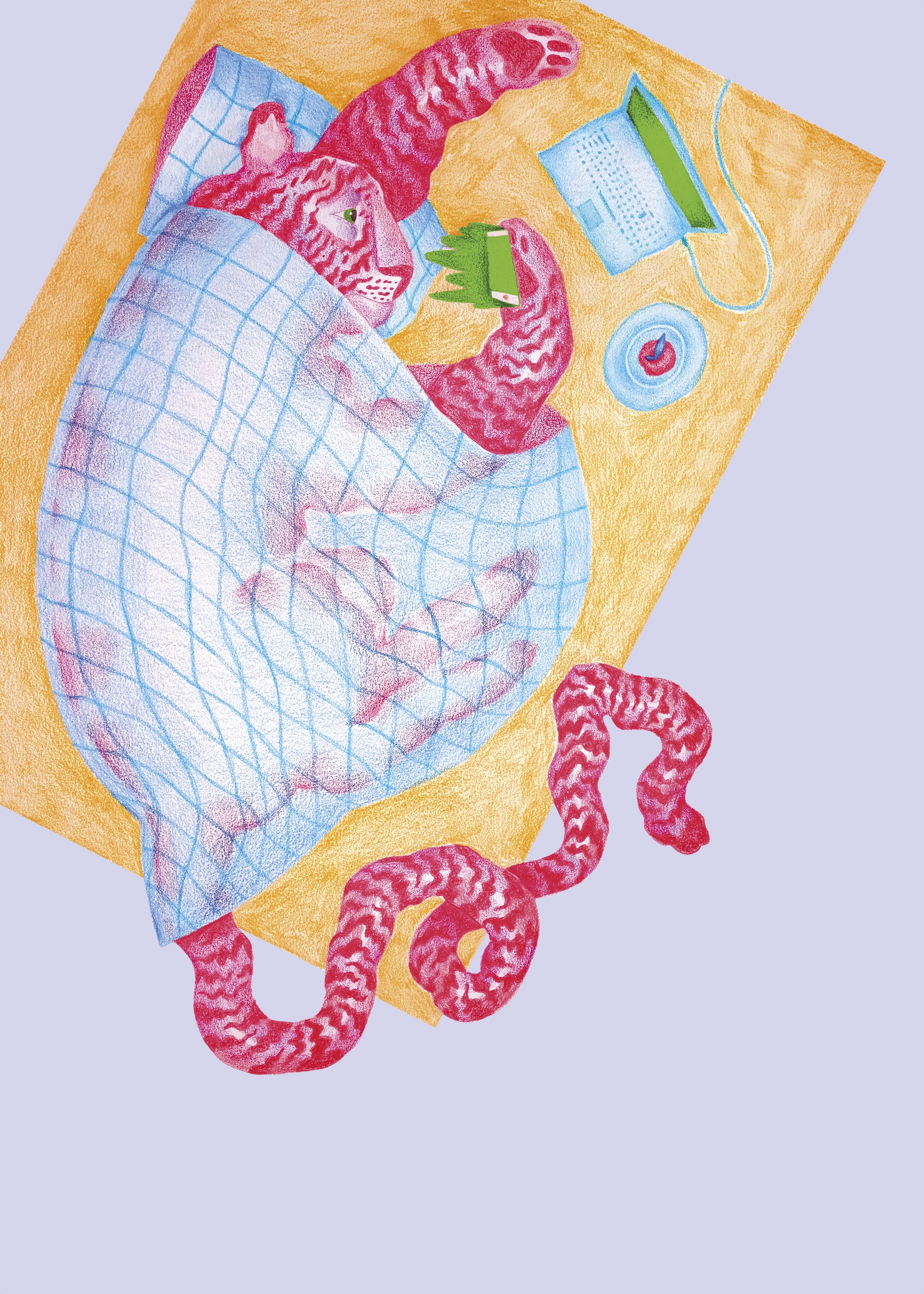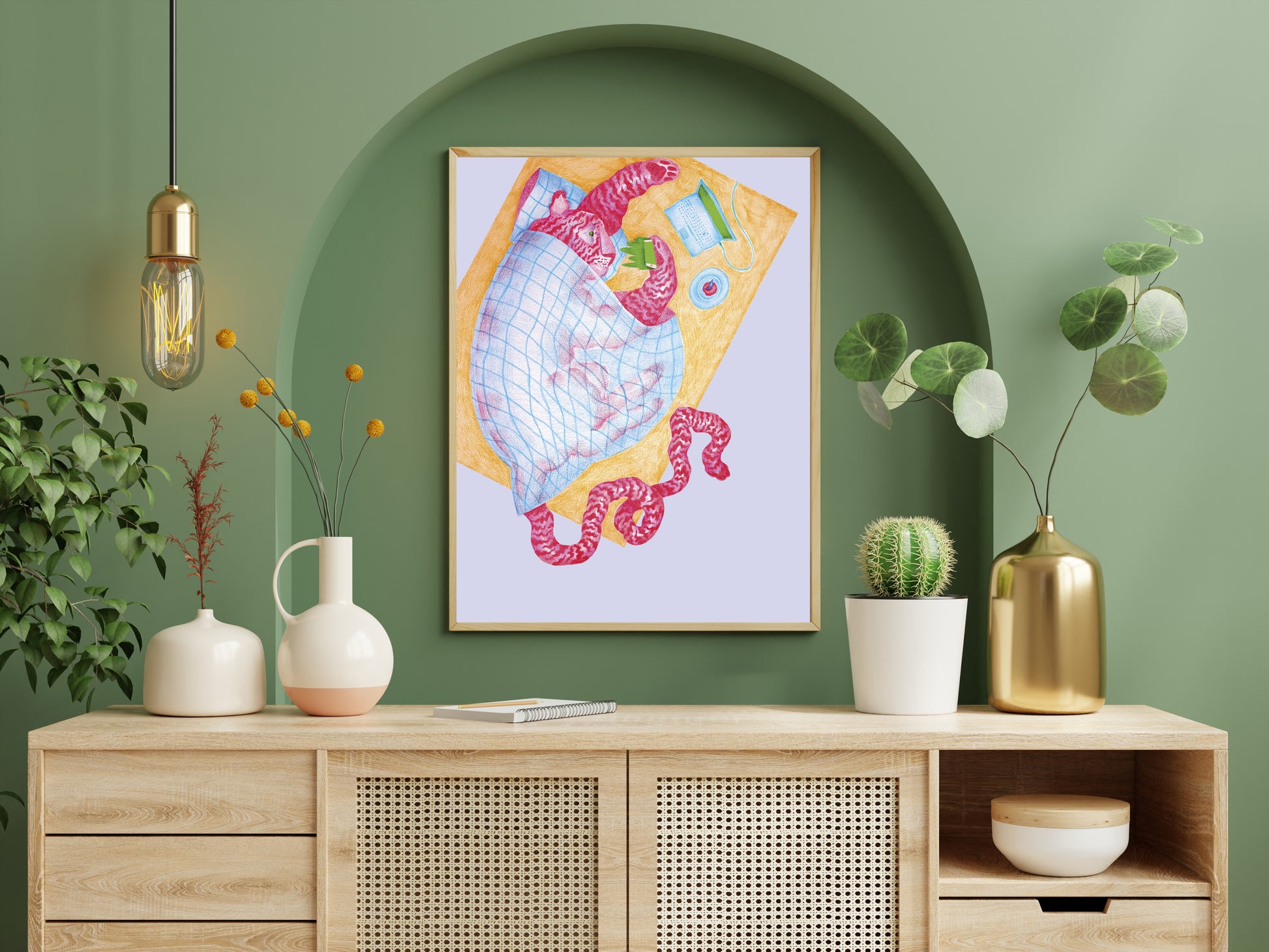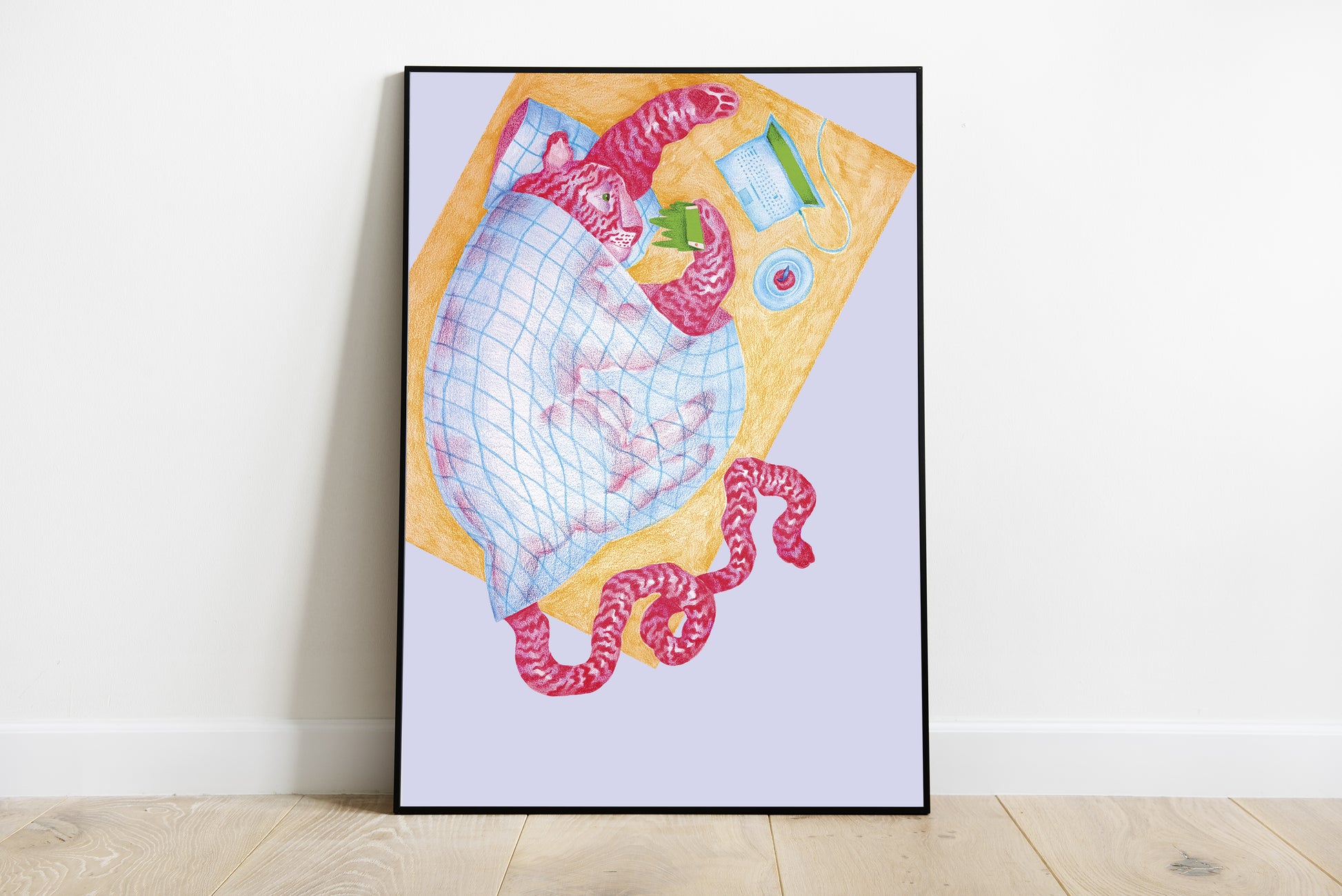 Poster with a Doomscrolling Tiger, who can't relate? Original illustration drawn by me with colored pencils :)